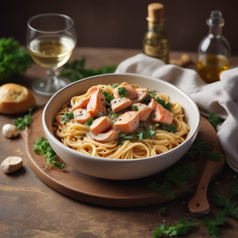 Pasta de Salmón con Champiñones en Salsa Cremosa