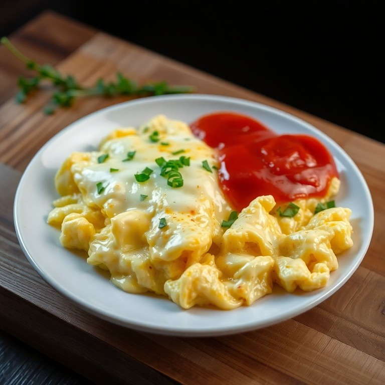 Ovos Mexidos Cremosos com Queijo e Ketchup