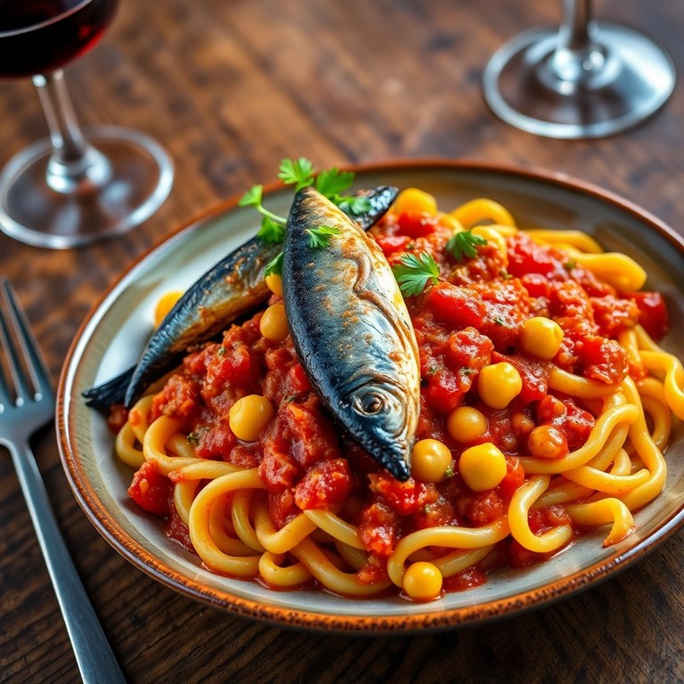 Macarrão à Putanesca com Sardinha e Grão de Bico