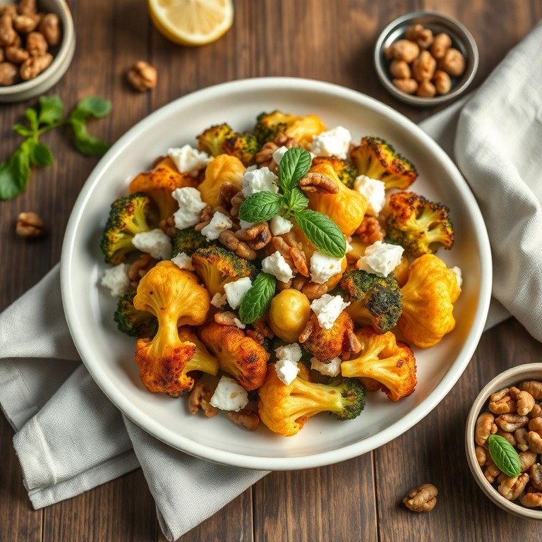 Salada Assada de Brócolis e Couve-Flor com Queijo Feta e Nozes