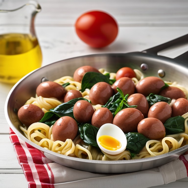 Spinatwurst-Nudelpfanne