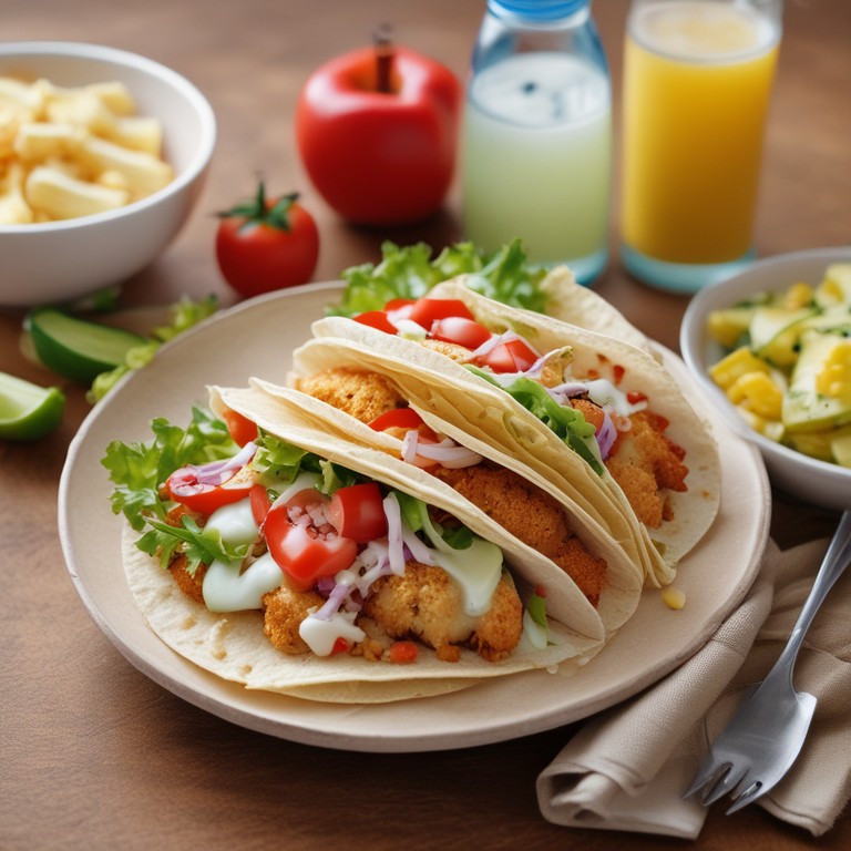 Tacos de Pescado Empanizado con Salsa Tartar y Ensaladas