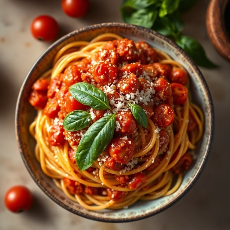 Macarrão Integral ao Molho Rústico de Tomate Pelado e Parmesão