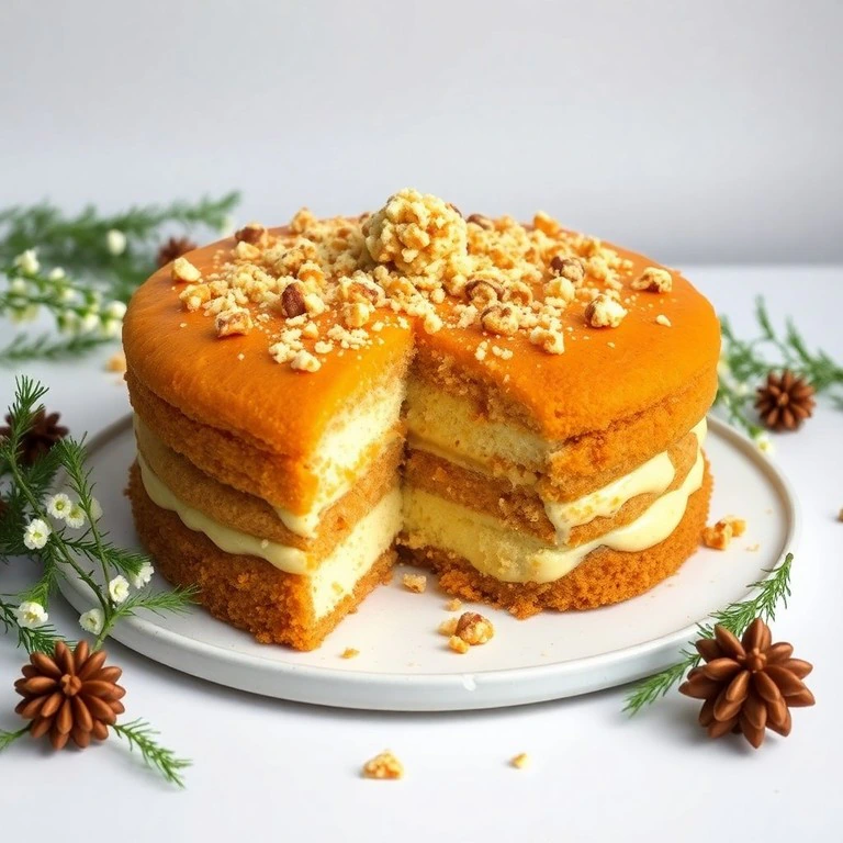 Bolo de Paçoca com Recheio de Leite e Cobertura de Farofa Doce