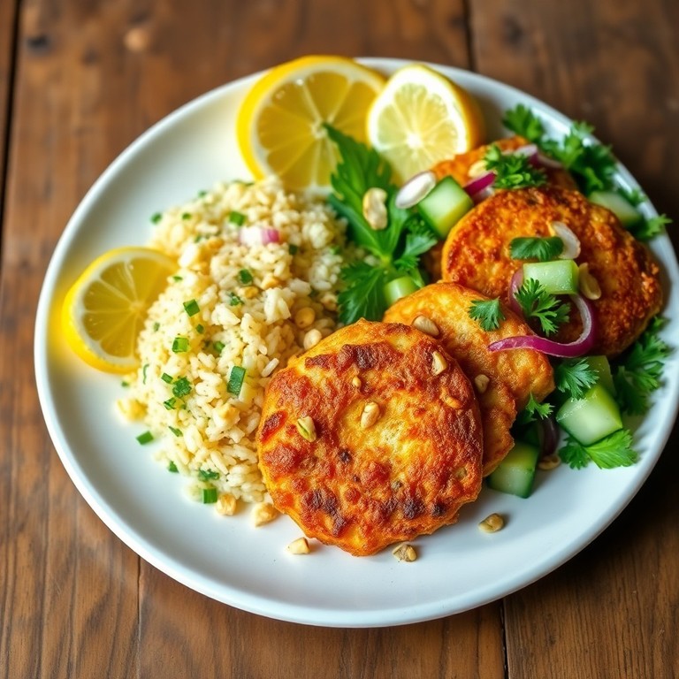 Vegetarian Pistachio-Crusted Potato Cakes with Lemon Rice Salad