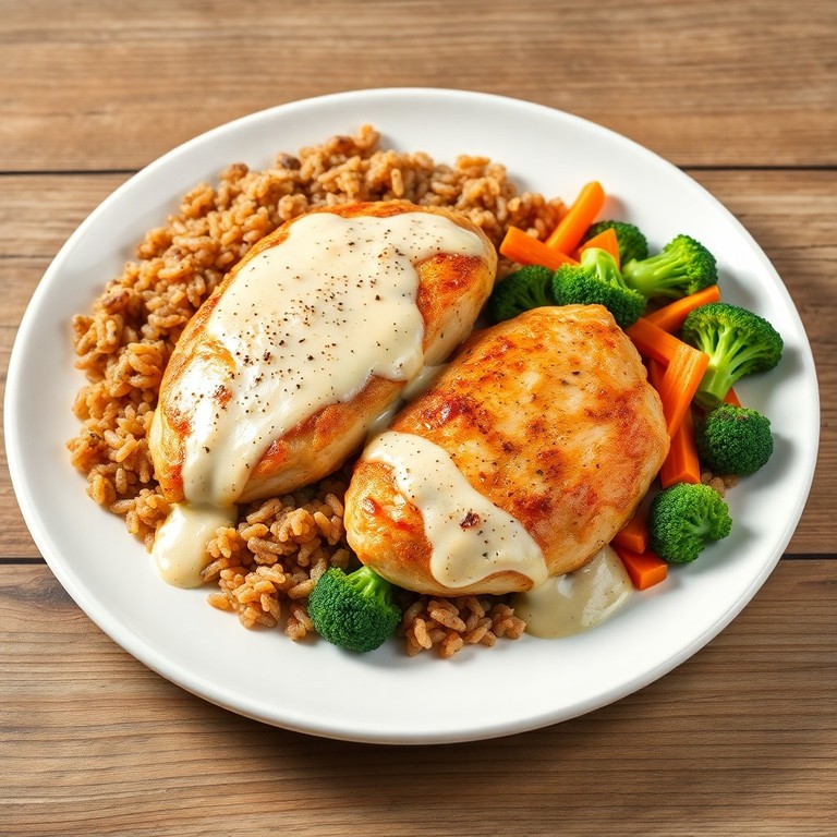 Creme de Alho com Frango ao Forno e Arroz Integral com Vegetais