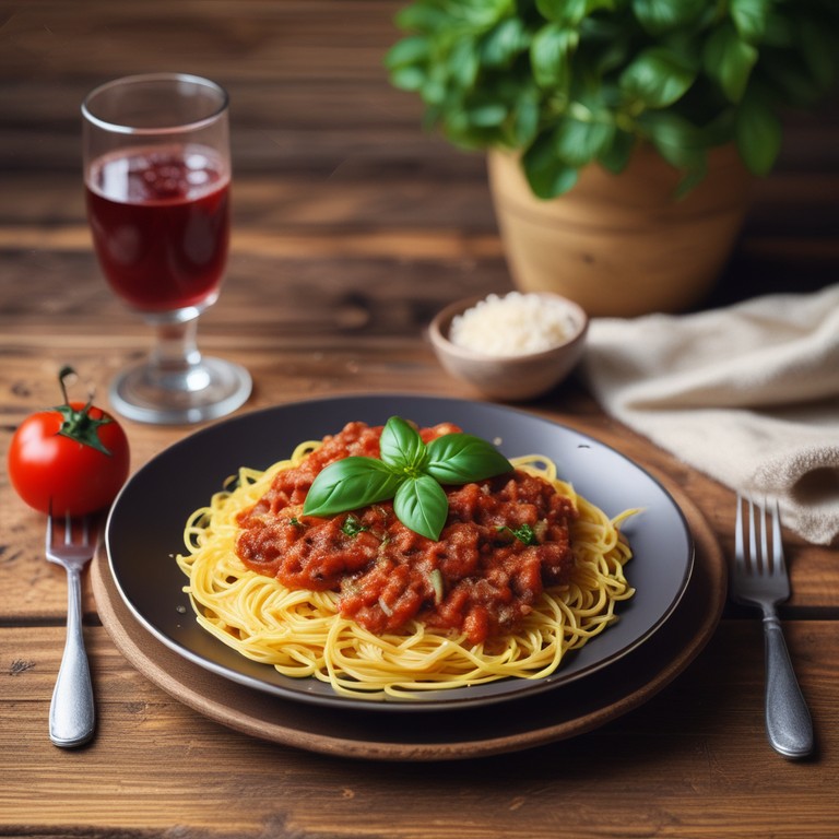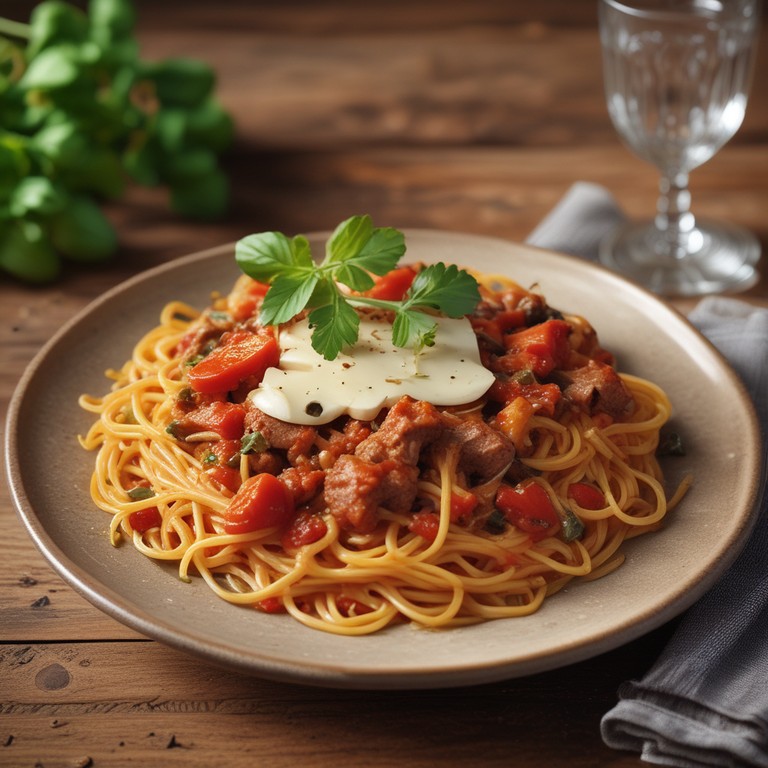 Espaguetis N5 con Salsa de Tomate Compleja y Carne Elaborada