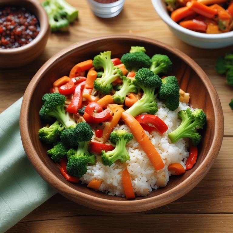Salteado Colorido de Brócoli, Zanahoria, Tomate y Arroz