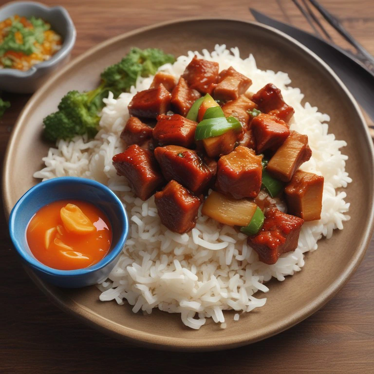 Porco Agridoce com Arroz de Legumes