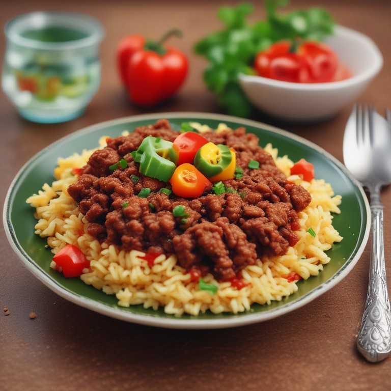 Arroz de Carne Moída com Feijão e Pimentão