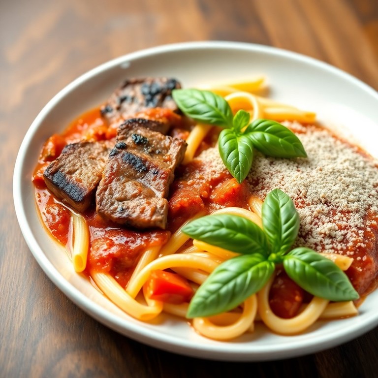 Penne with Fresh Tomato Sauce and Grilled Steak (No Olive Oil, No Onion)