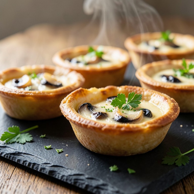 Tarteletes de Cogumelos Paris e Chalotas em Crosta de Queijo Fresco
