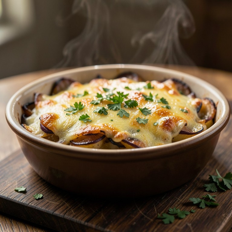 Gratinado Rústico de Batata, Cogumelos e Cebola Roxa Caramelizada