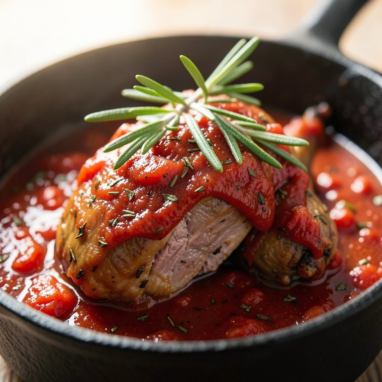 - Jarret de veau braisé à la tomate et au romarin