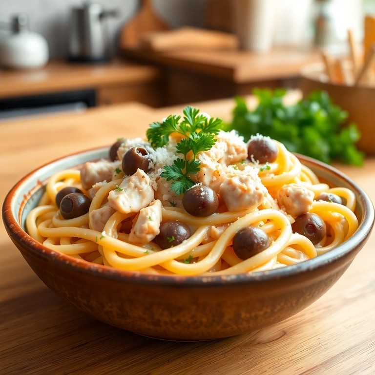 Macarrão Cremoso com Frango e Azeitonas