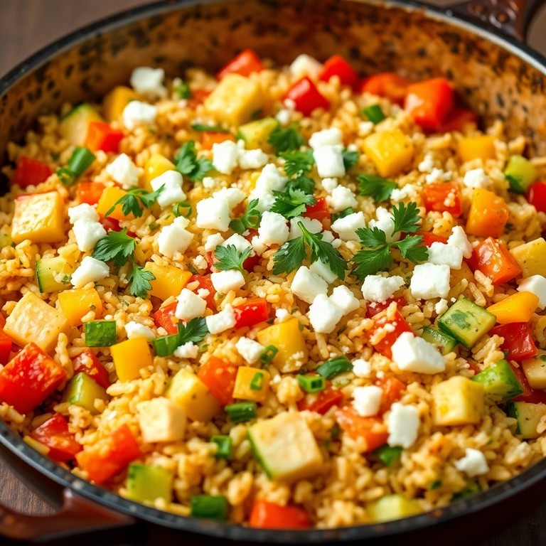 Gemüse-Reispfanne mit Hähnchen und Feta