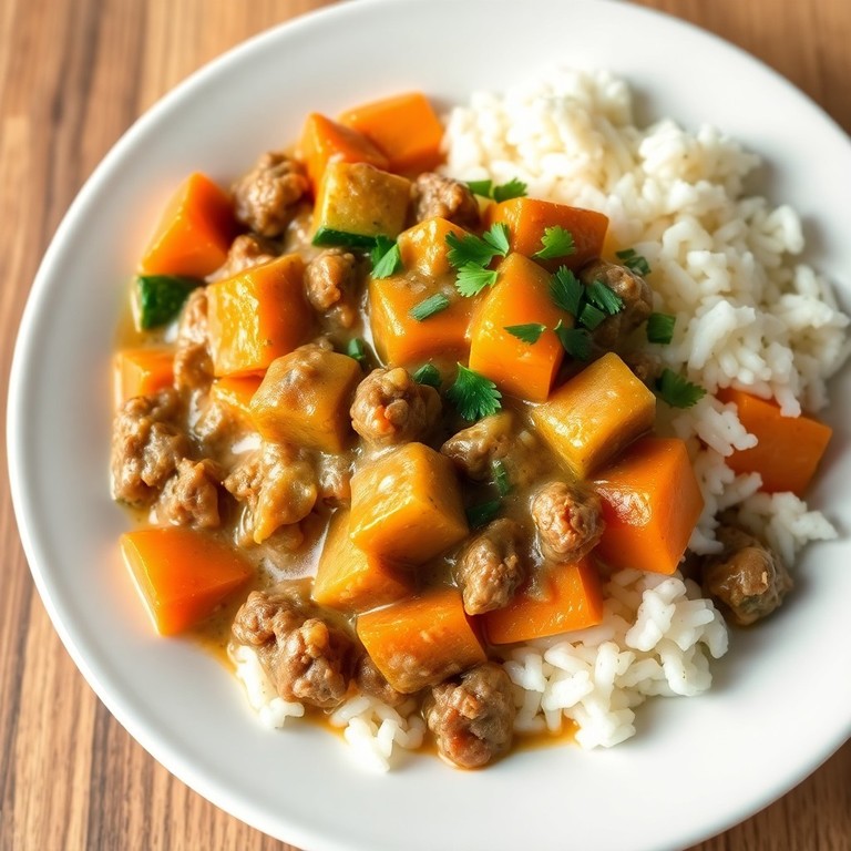 Estrogonofe de Carne Moída com Abobrinha e Batata Doce
