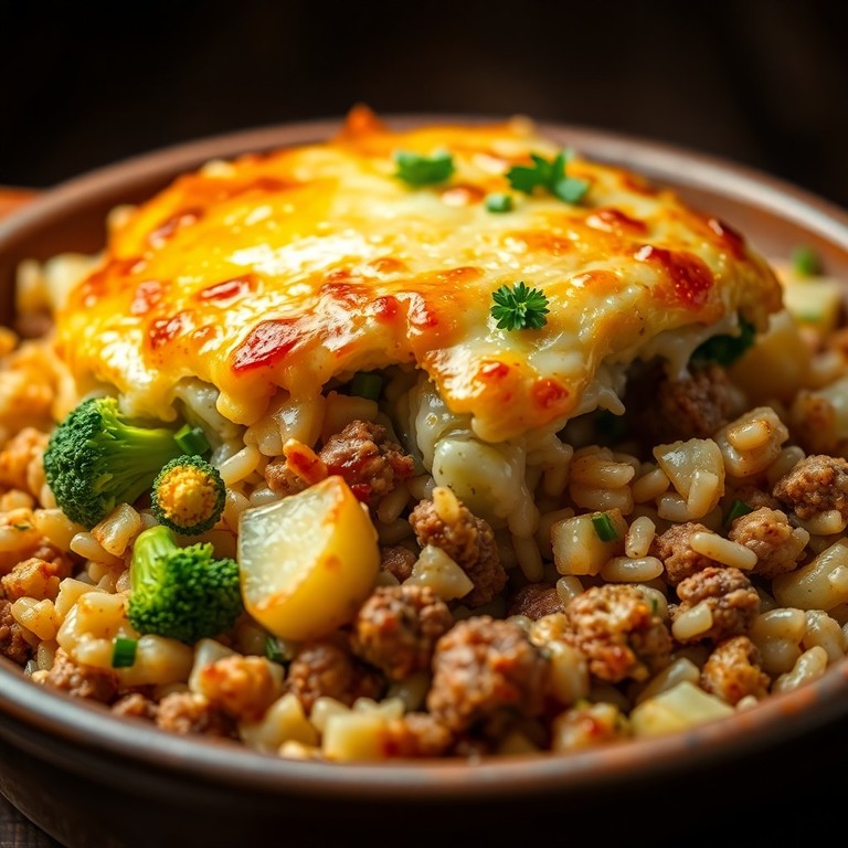 Arroz de Forno Cremoso com Carne, Batatas e Brócolis