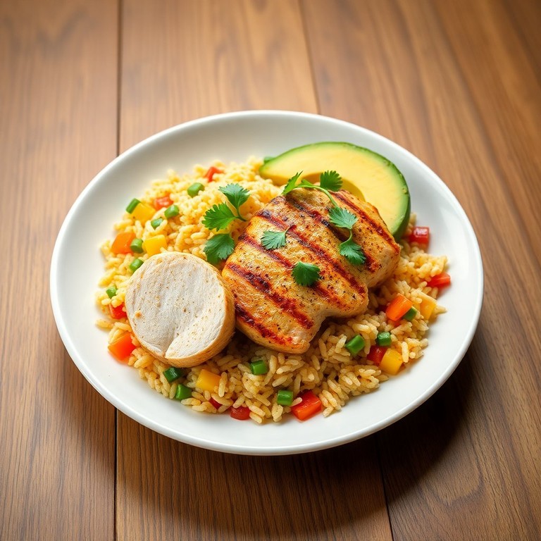 Arroz Veggie con Aguacate y Pollo a la Plancha
