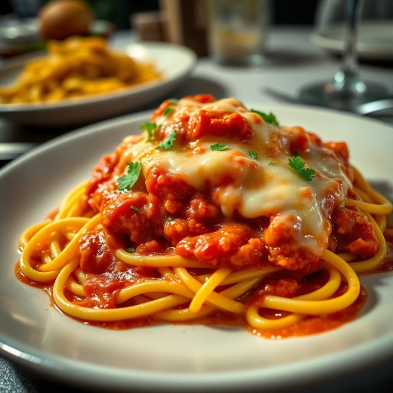 Spaghetti Cremoso com Molho de Tomate e Queijo