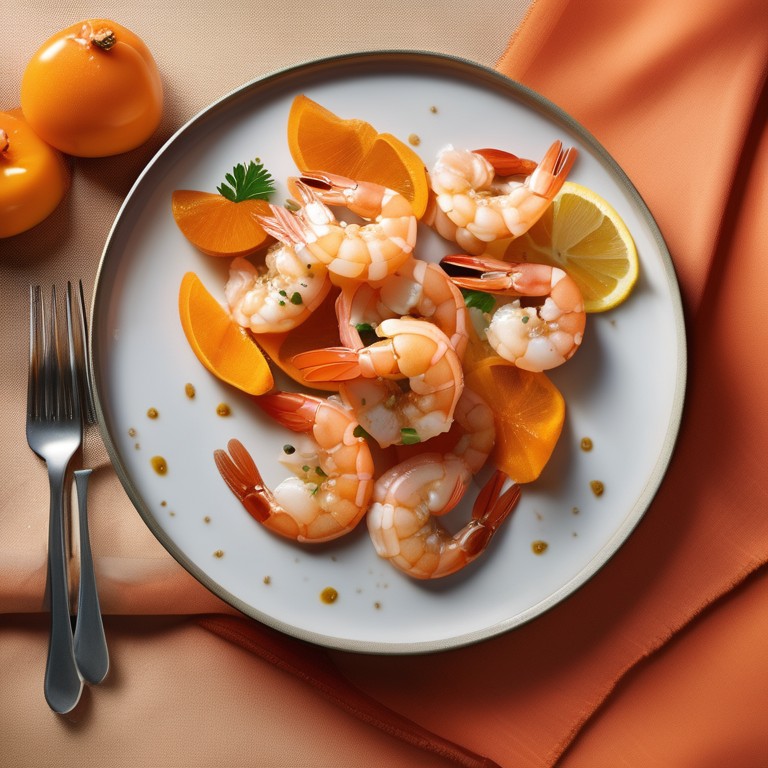 Shrimp with Vinaigrette Sauce and Persimmon Chips