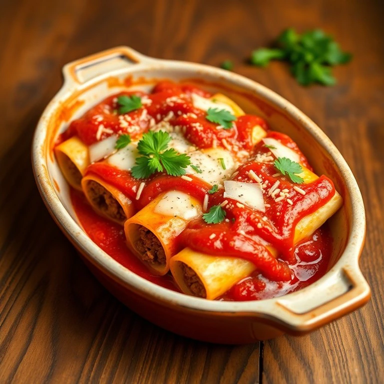 Canelone de Carne Moída e Queijo Cottage com Molho de Tomate Seco