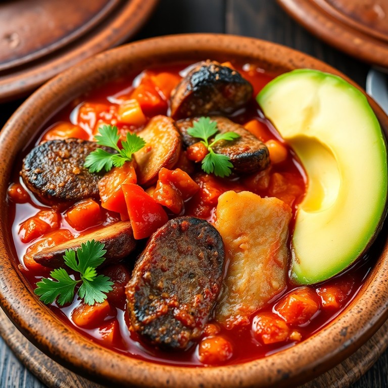 Crema Fría de Tomate Triturado con Aguacate y Morcilla