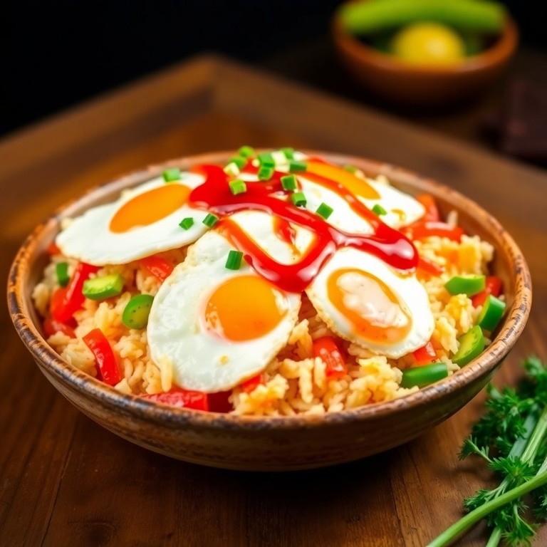 Arroz Salteado con Huevo y Ketchup Picante
