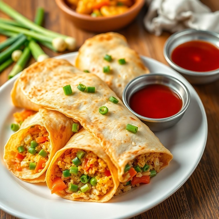 Rollitos de Tortilla Rellenos de Arroz Cantonés y Huevo