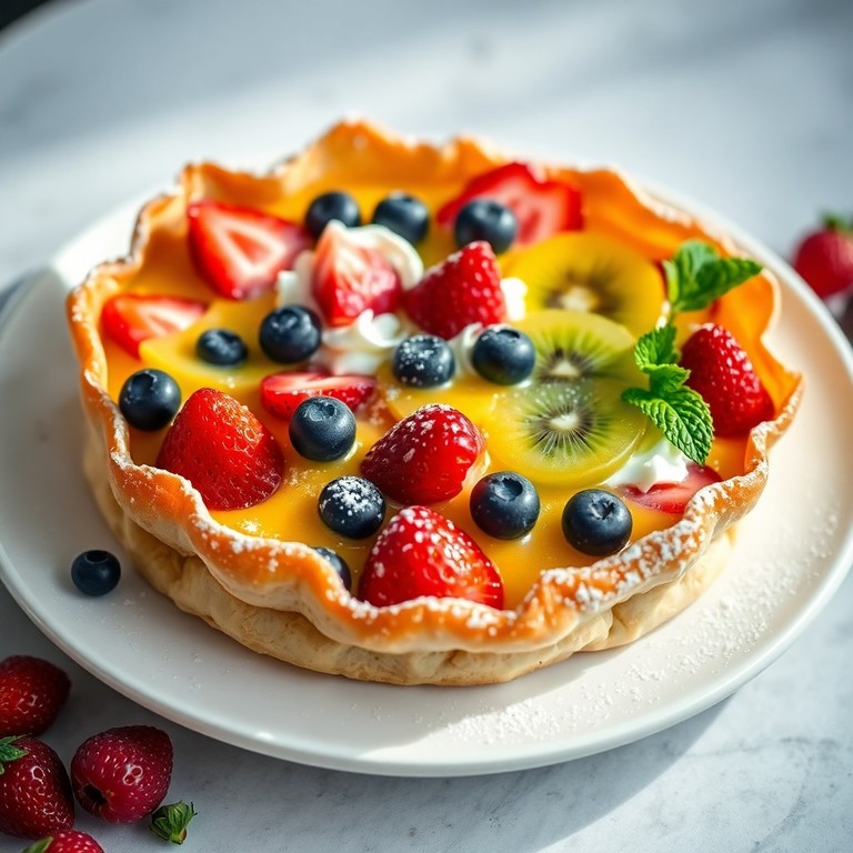 Torta Elegante de Massa Filo com Creme de Ovos, Natas e Frutas Frescas