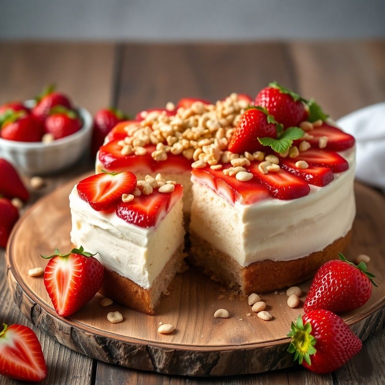 Bolo de Morango com Cobertura de Amendoim