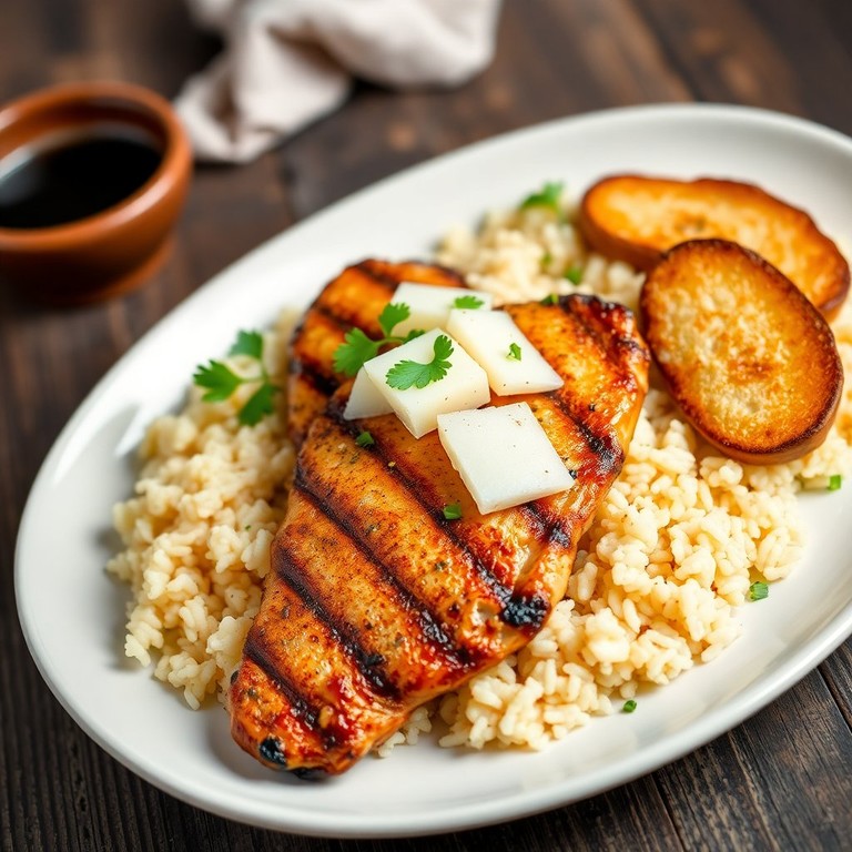Frango Grelhado com Queijo Coalho e Arroz Temperado