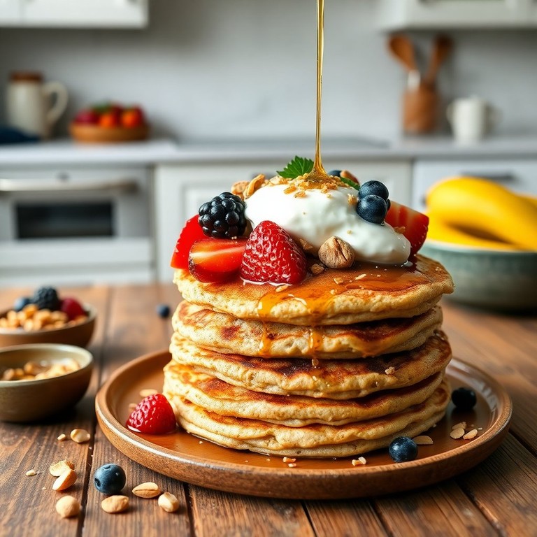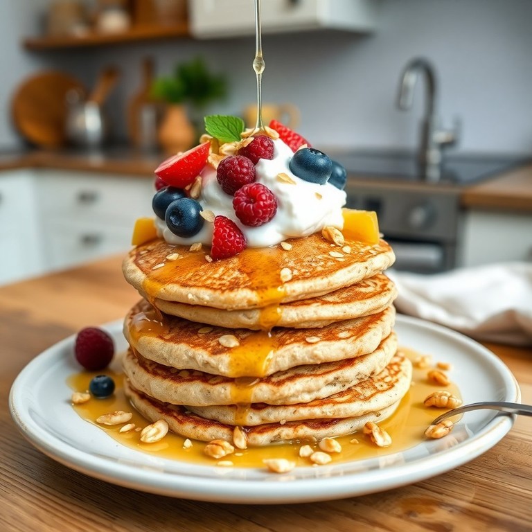 Tortitas de Avena y Almendra con Yogur Griego y Sin Crema
