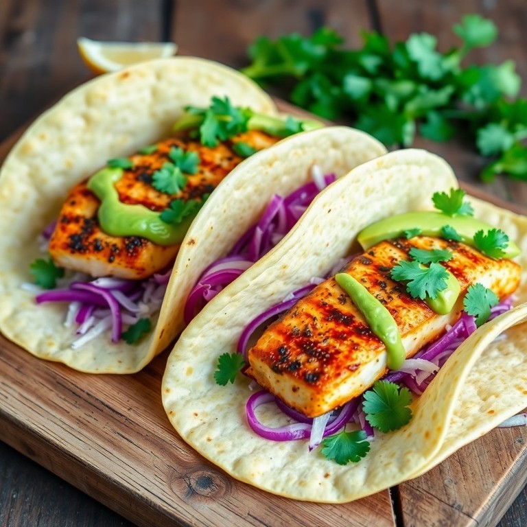 Tacos de Pescado Saludables con Salsa de Aguacate y Repollo