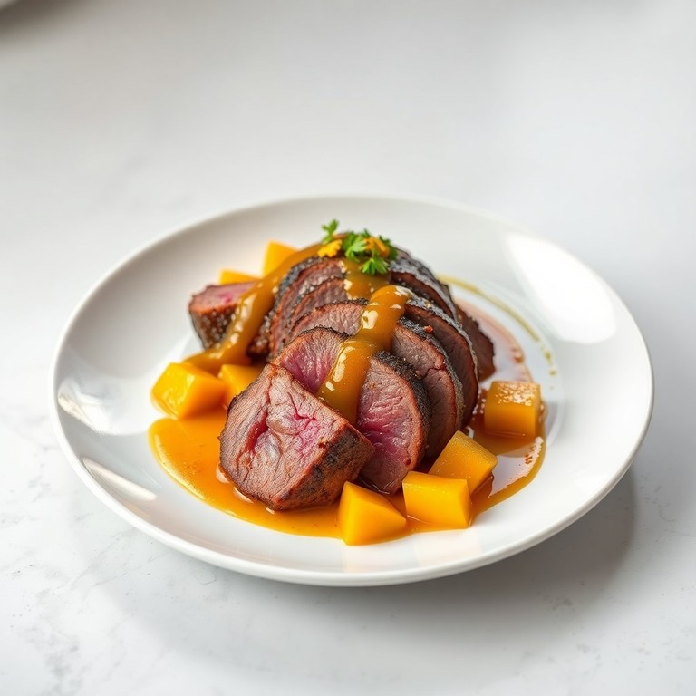 Magret de Pato com Manga Caramelizada e Molho de Laranja