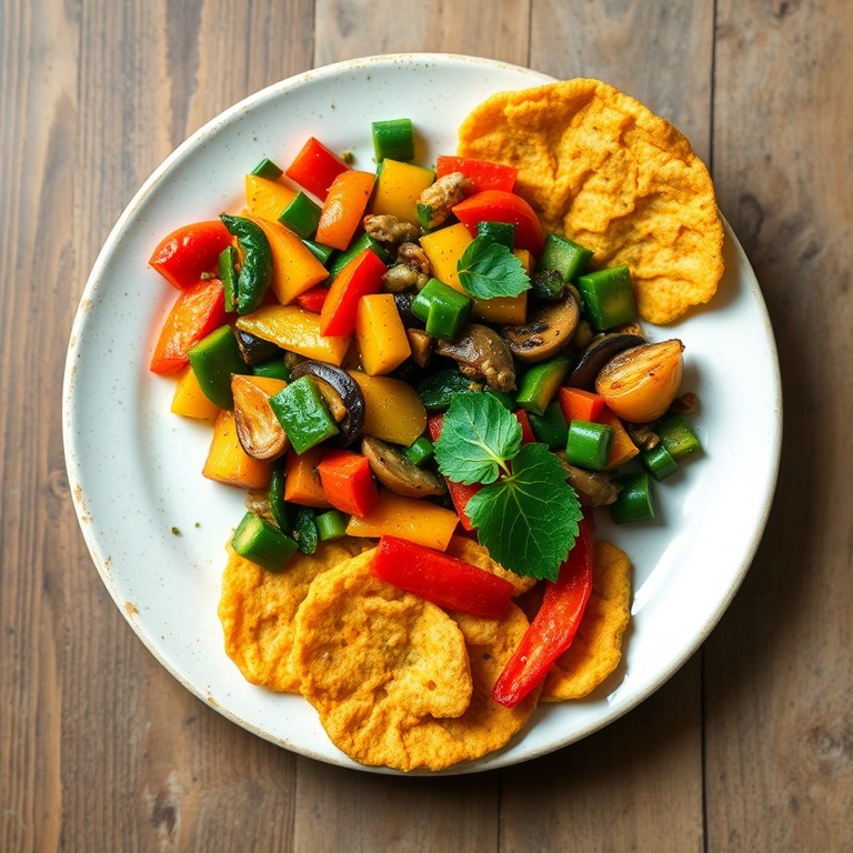 Refogado Colorido com Legumes Frescos e Farofa Crocante