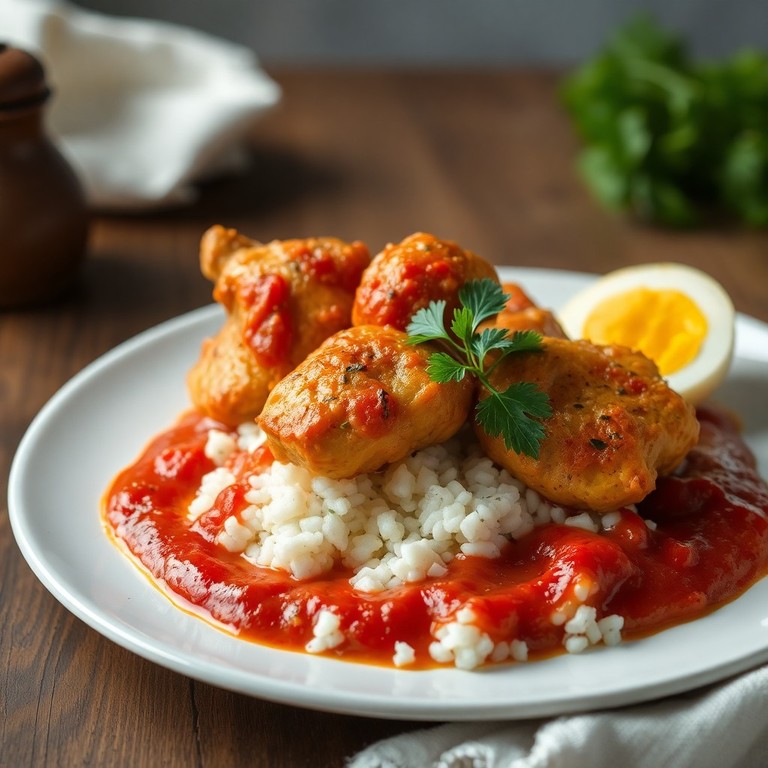 Frango a Passarinho Assado com Arroz e Molho de Tomate