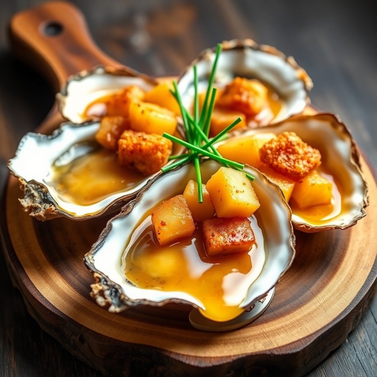 - Huîtres Croustillantes au Pommeau, Échalotes et Pommes Caramélisées
