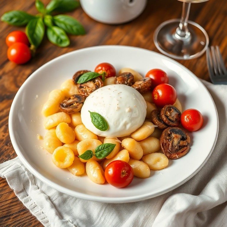 - Ñoquis de Patata con Burrata y Setas Salteadas