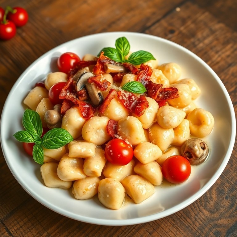 - Ñoquis Cremosos con Setas y Bacon en Salsa de Nata