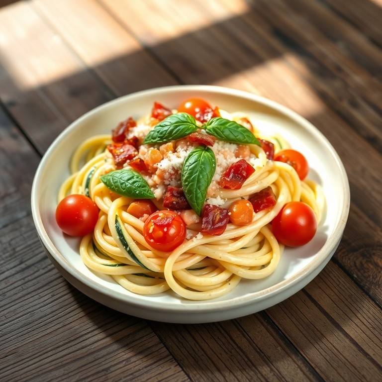 - Tallarines Cremosos con Calabacín y Tomates Cherry