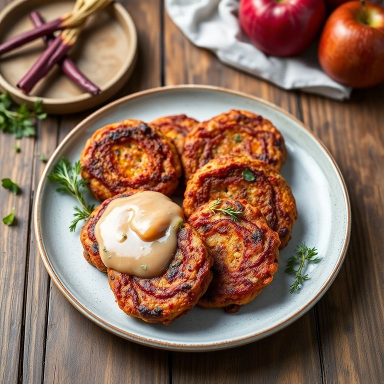 Bunte Rote Beete und Kartoffel-Puffer mit Apfelsoße