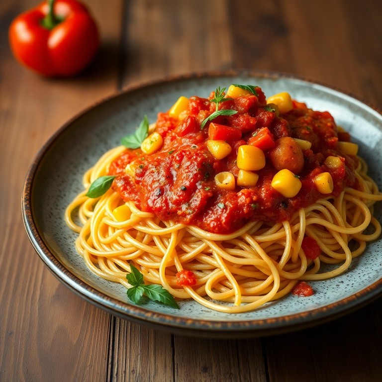 Espaguete ao Molho de Tomate com Legumes Frescos