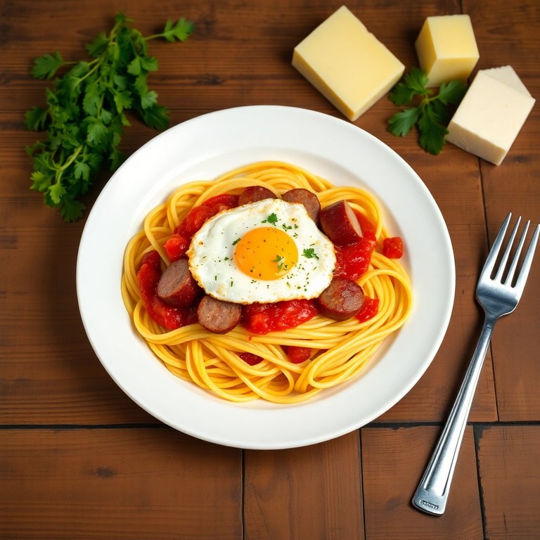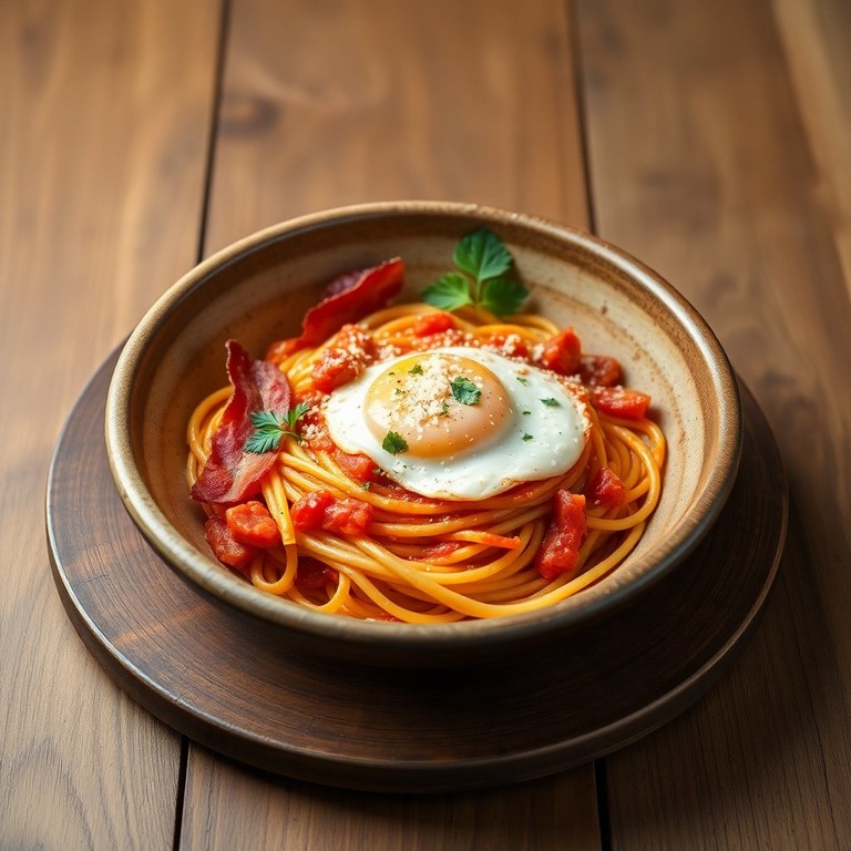 - Espaguete à Carbonara com Molho de Tomate e Ovo