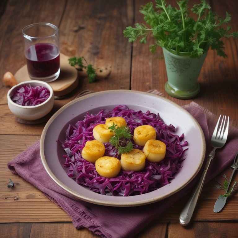 Klassisches Vegetarisches Deutsches Gericht mit Rotkraut und Knödeln