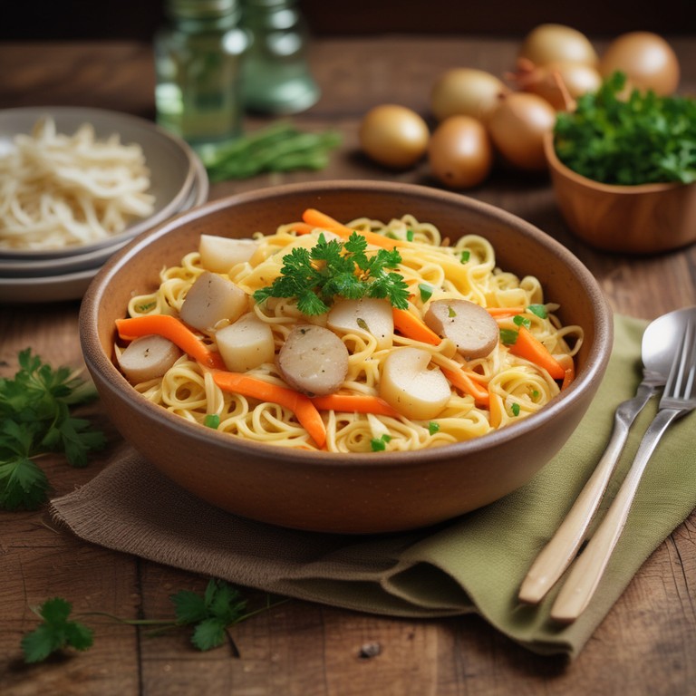 Fideos Cortos con Verduras y Papas