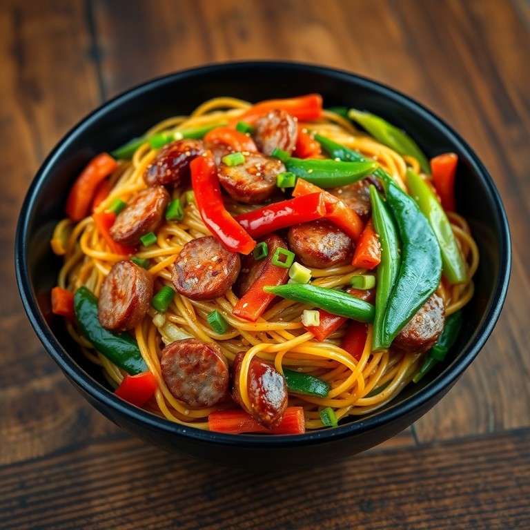 Stir-fry de Pâtes et Saucisses à la Chinoise