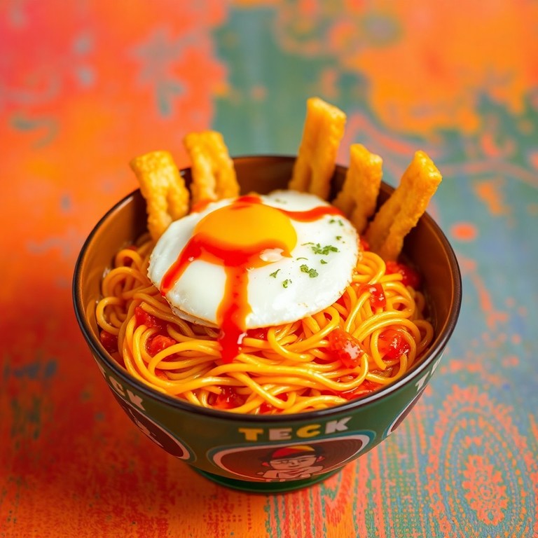 Miojo Apimentado com Ovo e Molho de Ketchup