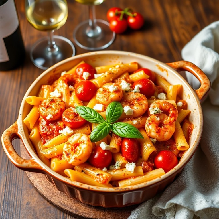 - Penne ao Forno com Camarão, Gorgonzola e Tomate Cereja