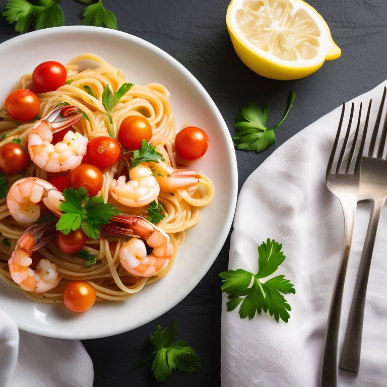 - Zitronen-Garnelen-Pasta mit Tomaten und Knoblauch
